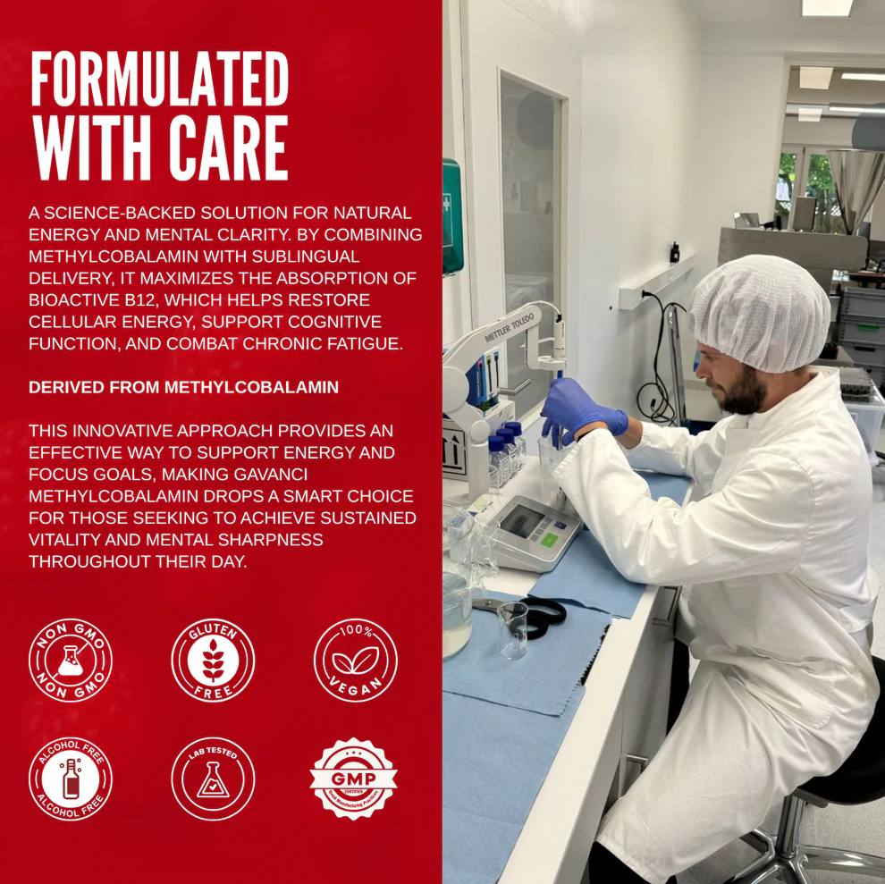 Our Vitamin B12 Liquid Supplement Drops stand out because we combine high-potency B12 with essential B-vitamins like B6, B1, Niacin, and Folate in a delicious raspberry flavor. Unlike traditional pills, our fast-absorbing liquid formula delivers nutrients quickly and effectively, ensuring maximum results. Backed by vegan, gluten-free, and non-GMO standards, plus third-party lab testing, we guarantee purity, quality, and real benefits you can feel every day.